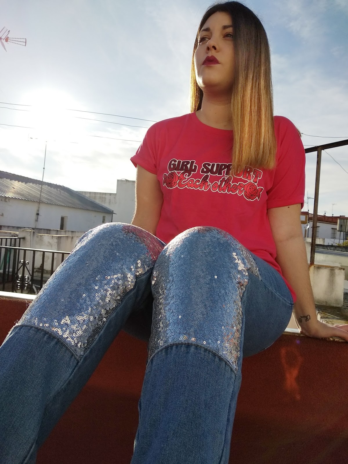 Me encanta el detalle de las lentejuelas en el pantalón!